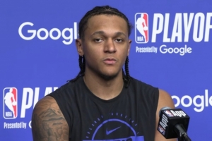 班凯罗:过去发生的事情,你没有任何办法去改变。说到底,我们现在站在了季后赛的舞台上,我们有机会去实现我们从去年十月起就设定的目标。所以就像我说的,你不能太纠结于常规赛发生的事情和那些挫折,你必须把大家团结起来,意识到我们现在全员健康,我们感觉整个团队非常有默契。我们在对阵黄蜂的比赛中找到了防守、能量和沟通的感觉,我们知道只要能延续这种表现,无论对手是谁,我们每晚都有机会赢球。所以,这绝对是一个全新的赛季,全新的能量。